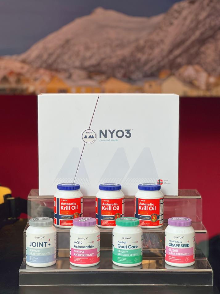 作为挪威高端膳食营养品牌,NYO3将携带挪威药房明星产品NYO3纯南极磷虾油、阿蒙森纪念版磷虾油、海豹油和氨糖等全系19款产品亮相展区,涵盖心脑呵护、肝脏养护、代谢调节、关节养护、美容养颜、女性健康、健康润眼、肠道营养、舒压助眠等9大品类,现场观众可以扫码下单购买原装进口产品,现场体验,便捷下单,为健康全面保驾护航。